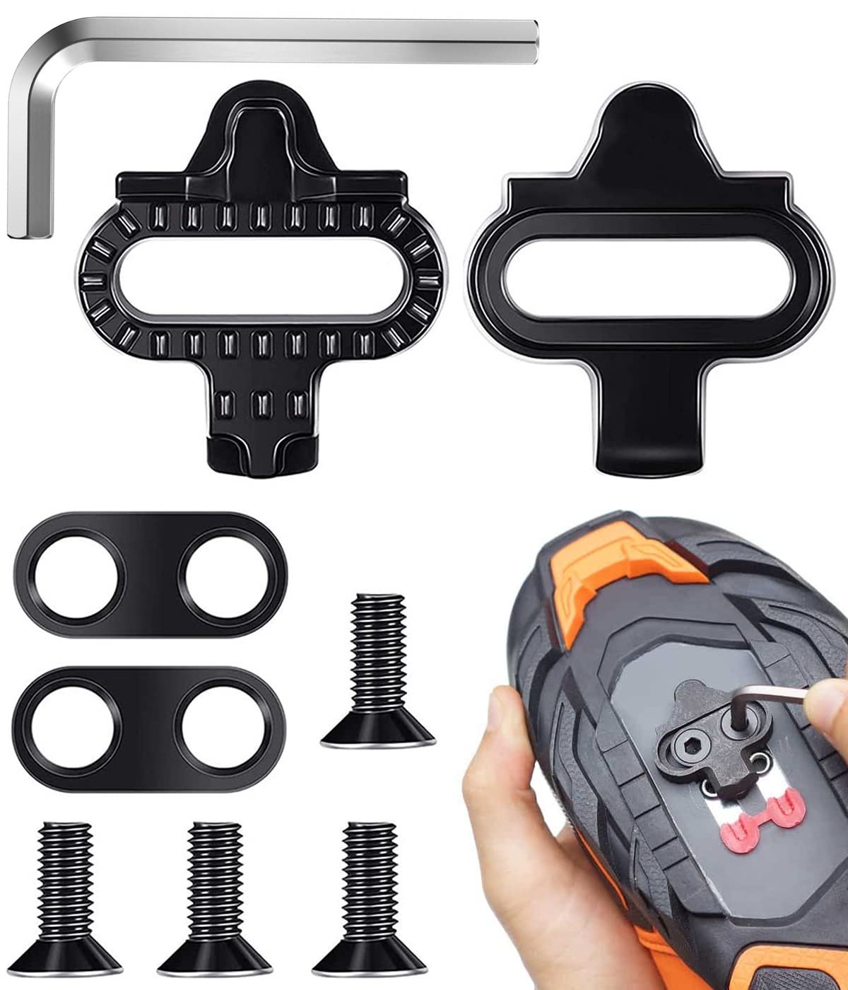 Pair of spare cleats for MTB / Trekking quick release pedals; SPD standard (used by shimano pedals and other brands).Ideal for use with SPD pedals. Compatible with indoor bikes and exercise bikes. Screws and plates supplied as shown in the photo. Article packed in polybag.
